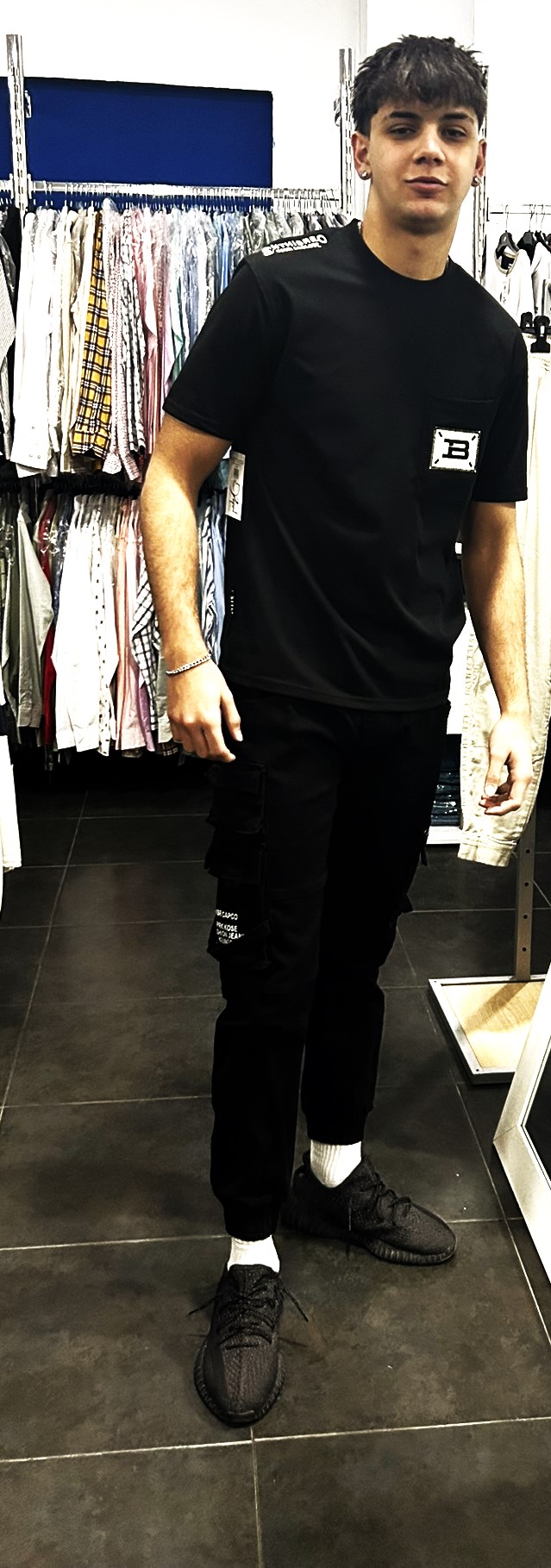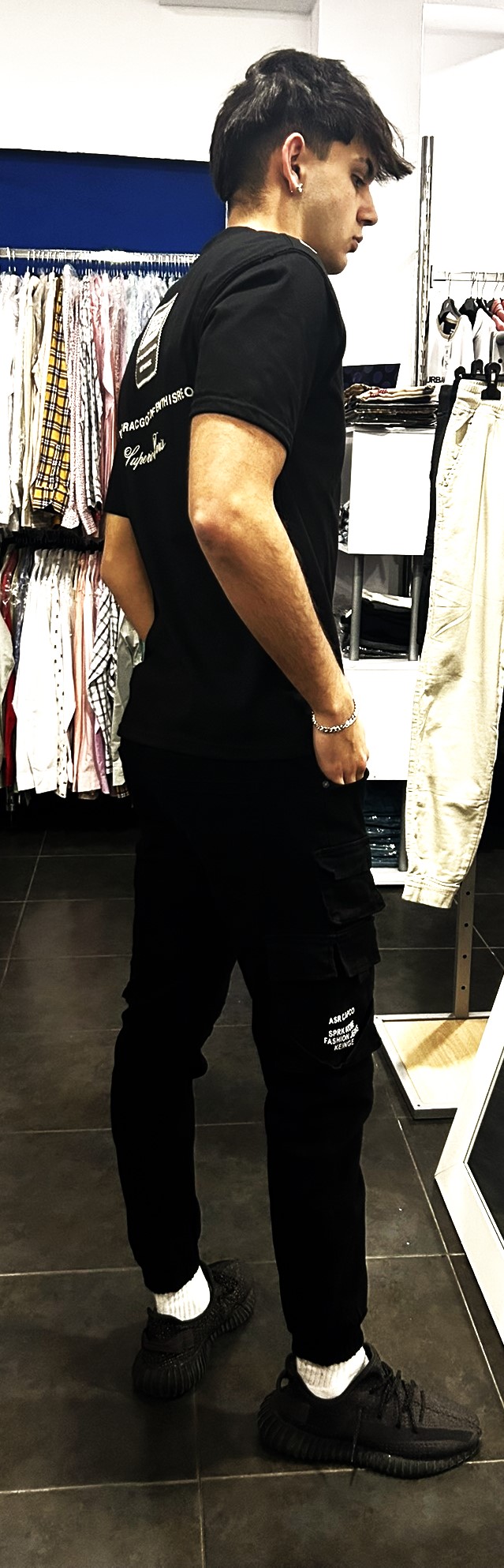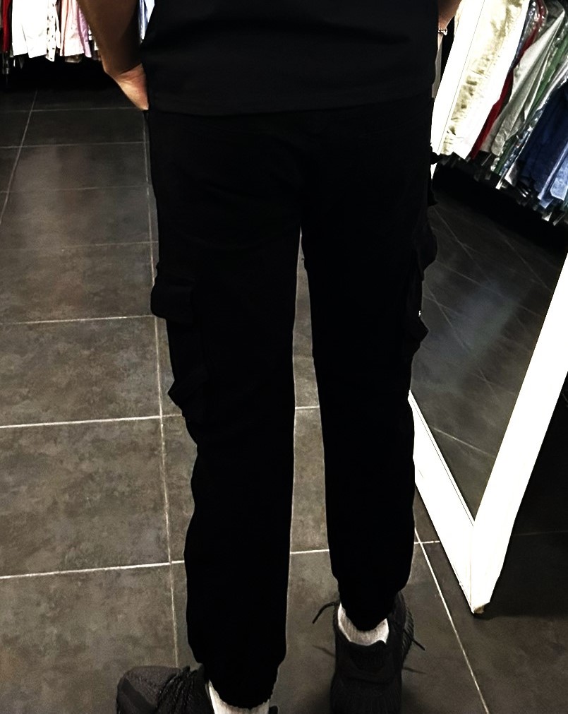 pantalón tipo cargo con bolsillos y puño en el camal, cintura con goma y cordón