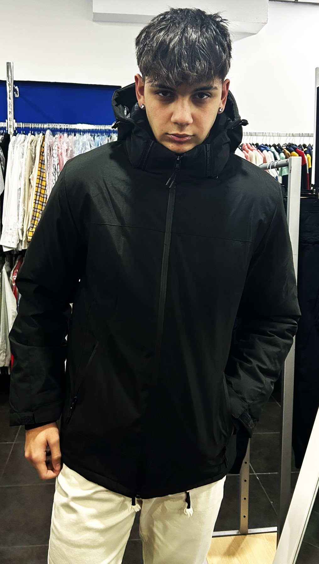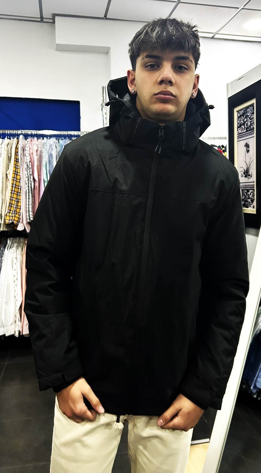 Chaqueta de cremallera con capucha extraíble con bolsillos de cremallera y cintura ajustable