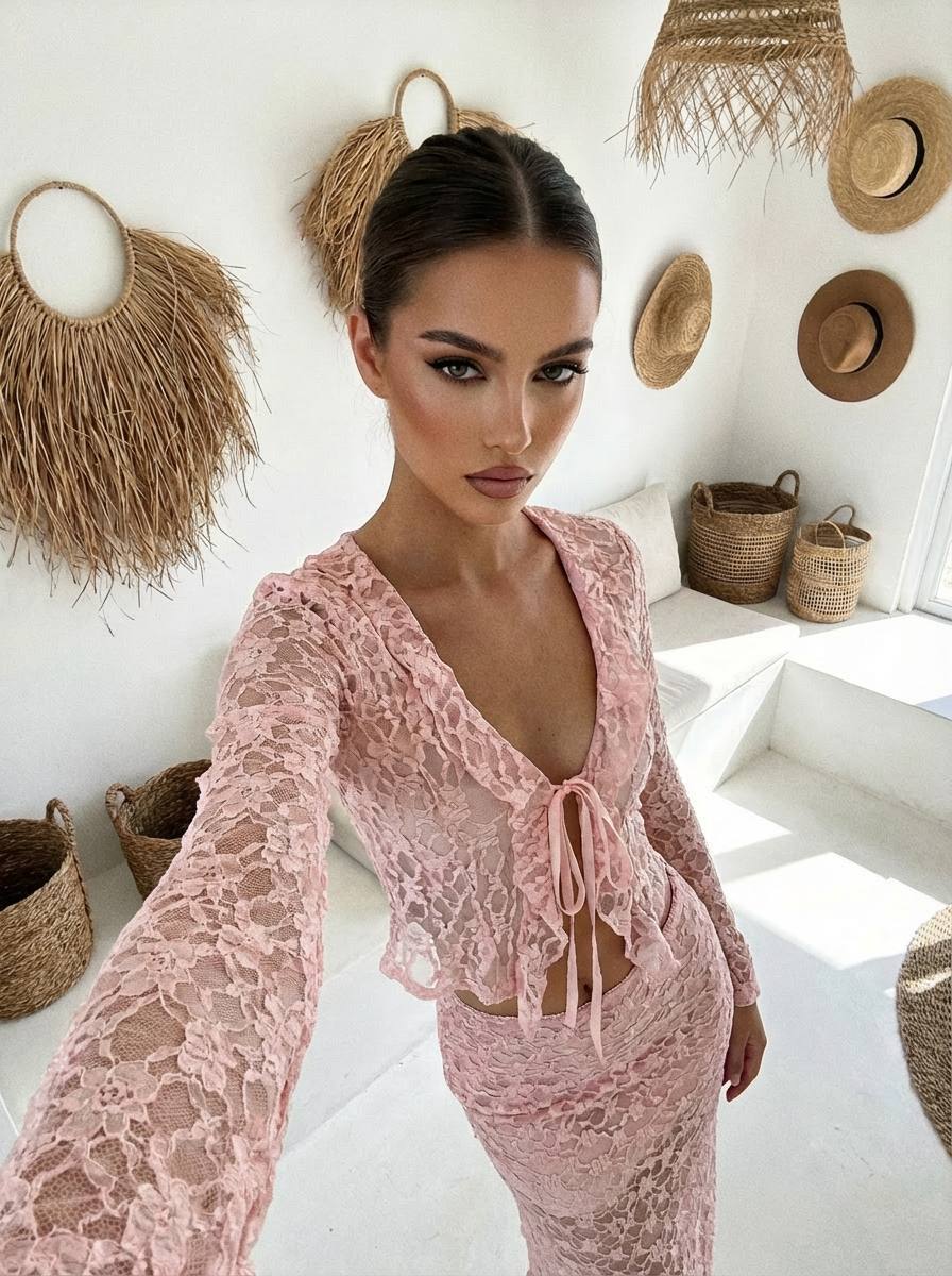 Top estilo torera con detalles en encaje atada por delante.  Composición 95% poliéster y 5% elastano. Disponible en varios colores.
