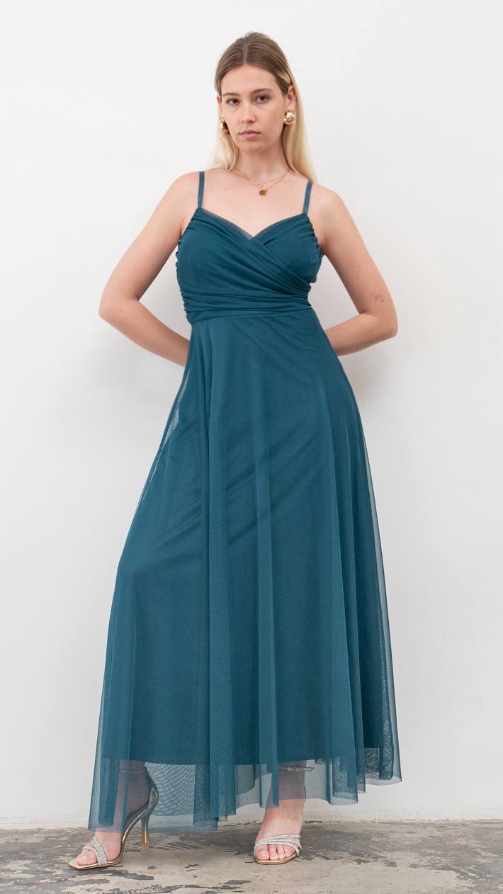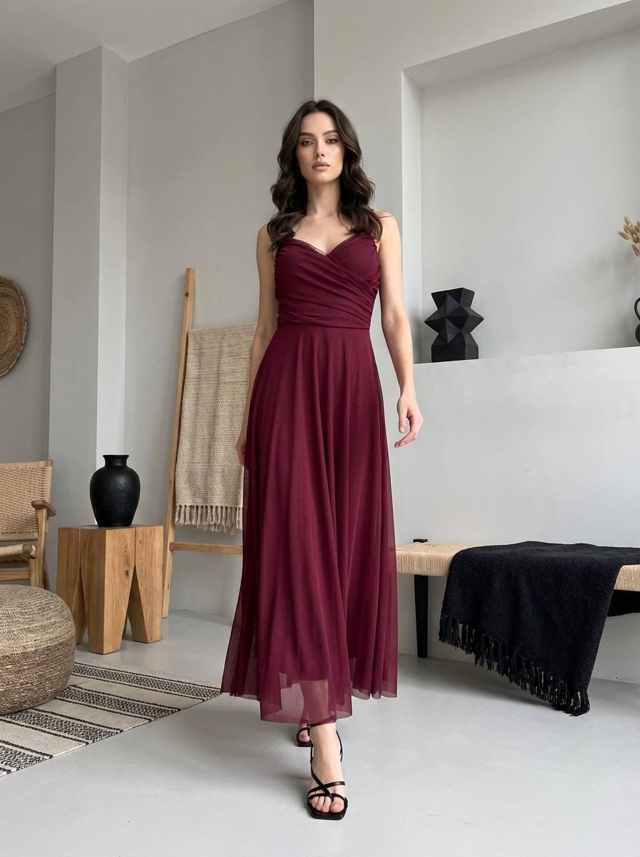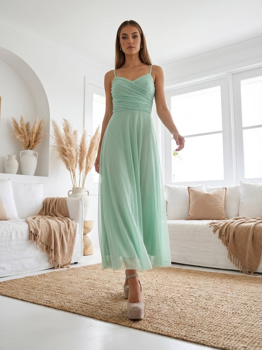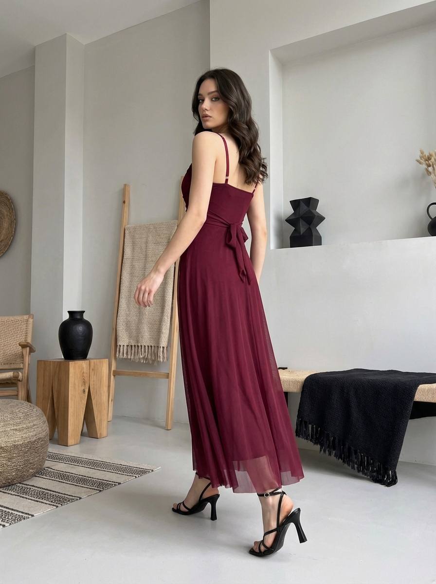 Vestido de gasa forrado con tirantes ajustables con cinta en la parte de detrás de la cintura. 75 poliéster y 25% elastano. Disponible en varios colores.