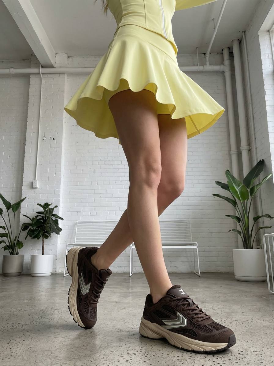 Falda corta de tablas de 80% poliéster y 20% elástico.  Disponible en varios colores.